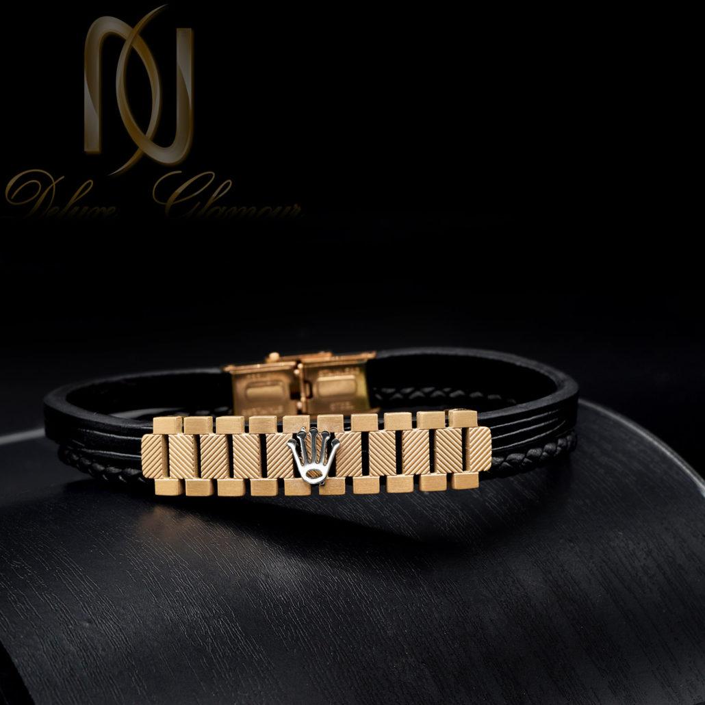 5- دستبند مردانه چرمی طرح رولکس و تیر ds-n483