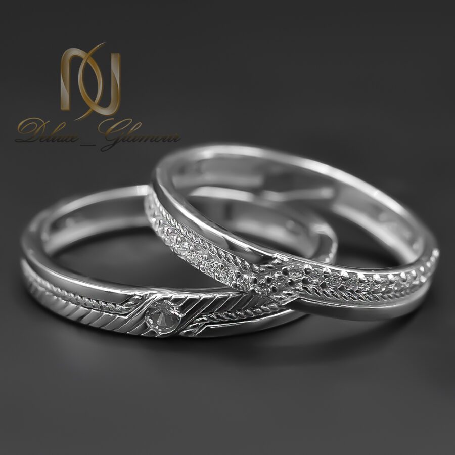 در طراحی حلقه زنانه و مردانه، از نگین های زیرکونیا استفاده شده که به دلیل شفافیت بالا و برش های دقیق، از درخشش بالایی برخوردارند . این نگین ها به صورت ردیفی روی حلقه زنانه قرار گرفته اند که باعث درخشندگی بیشتر و زیبایی آن شده است.