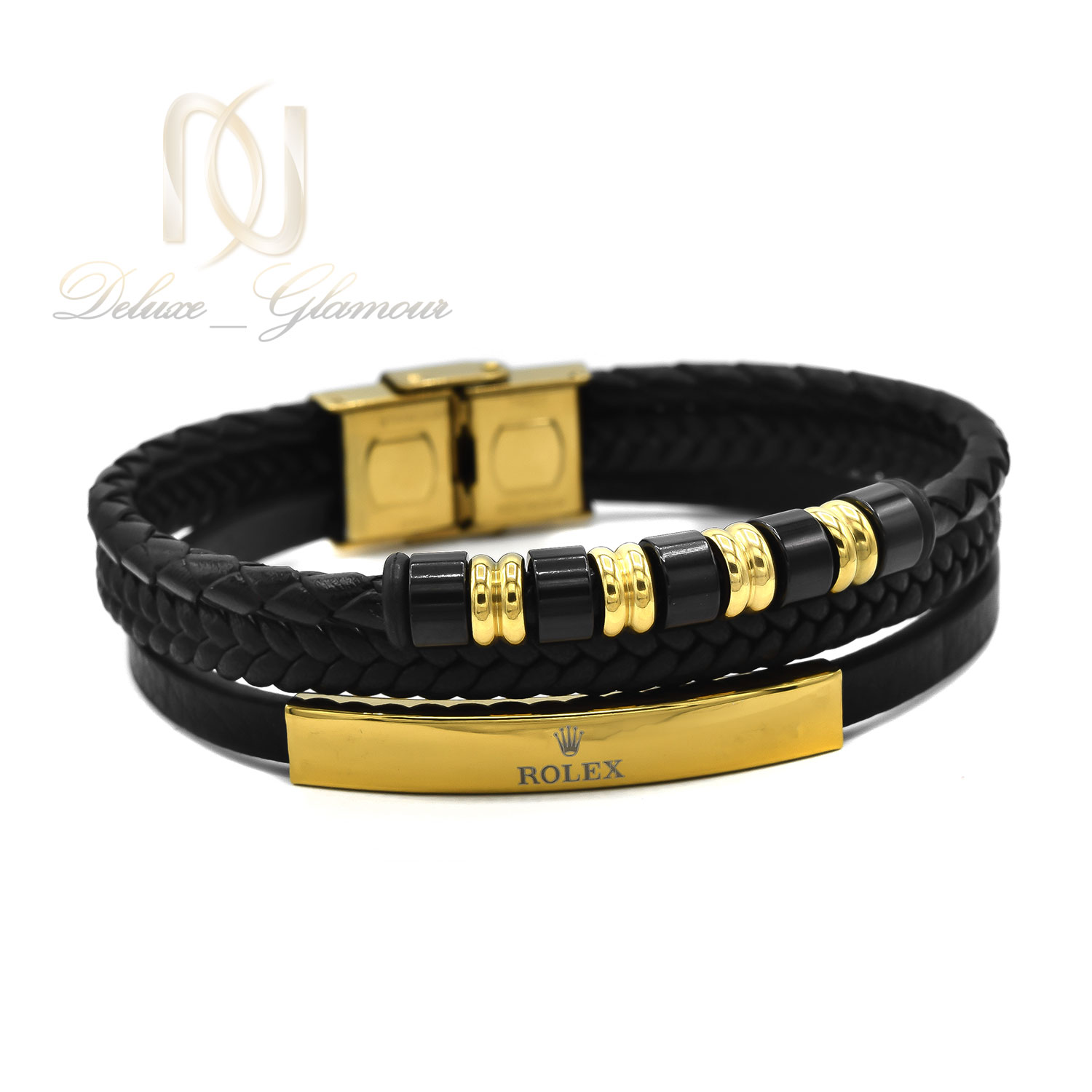 دستبند اسپرت مردانه چرم رولکس ds-n936 دارای رویه و قفلی از جنس استیل درجه یک است که بر روی آن روکش آب طلای 18 عیار قرار گرفته است که باعث می شود رنگ استیل کاملا همرنگ طلا باشد.این دستبند مردانه شیک دارای طول 21 سانتی متر است که در انتهای آن قفل جعبه ای قرار دارد که از طریق آن می توان دستبند را تغییر سایز داد و به اندازه دلخواه در اورد. این دستبند زیبا گزینه بسیار مناسبی برای ست کردن با انگشتر مردانه رولکس نیز می باشد که در بخش انگشتر مردانه قابل مشاهده است.