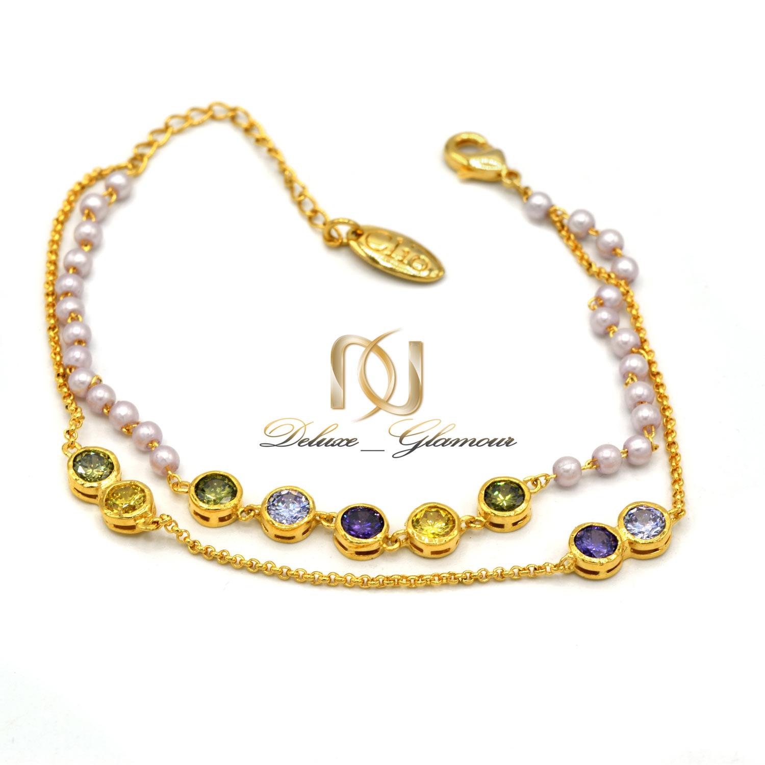 دستبند دخترانه کلیو با نگین های رنگی سواروسکی اصل ds-n202 از سری زیورآلات دخترانه است که از فلز پالادیوم ساخته شده است و بدون تغییر رنگ می باشد. این دستبند به صورت دولاینه می باشد که در یک ردیف آن مرواردی با نگین های سواروسکی قرار دارند و در طرف دیگر زنجیر با مهره ها و نگین های سواوسکی وجود دارد. نگین های سواروسکی قرار گرفته شده بر روی دستبند به چهار رنگ مختلف وجود دارند که به صورت سه بعدی زیبایی منحصر به فردی به دستبند بخشیده اند