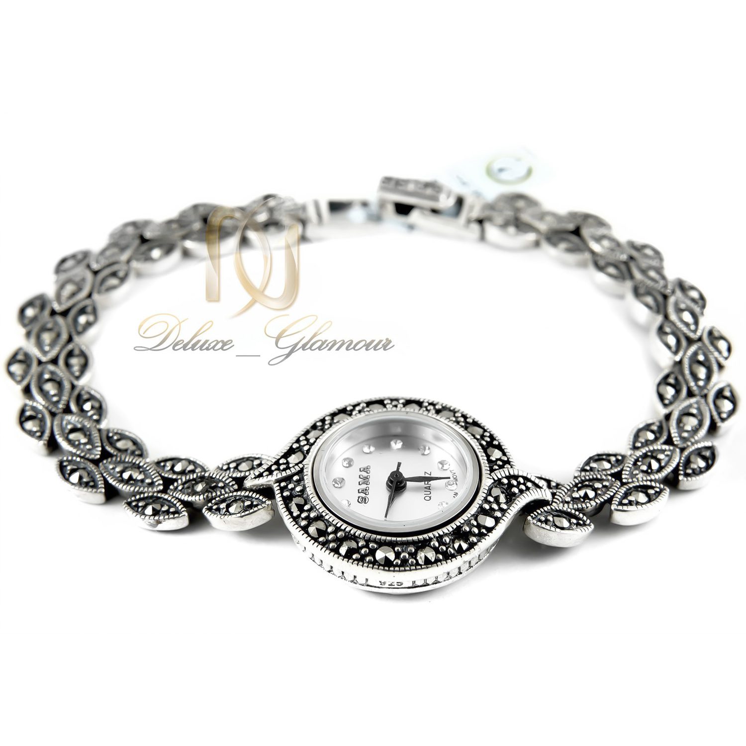 ساعت نقره زنانه سیاه قلم اصل WH-N119 جزو کم وزن ترین و شیک ترین ساعت های نقره زنانه می باشد. این ساعت از جنس فلز نقره با عیار 925 می باشد و بدون تغییر رنگ است. این ساعت شیک به صورت طرح سیاه قلم با نگین های مارکازیت درجه یک است که به صورت باگت و بدون ریزش هستند.