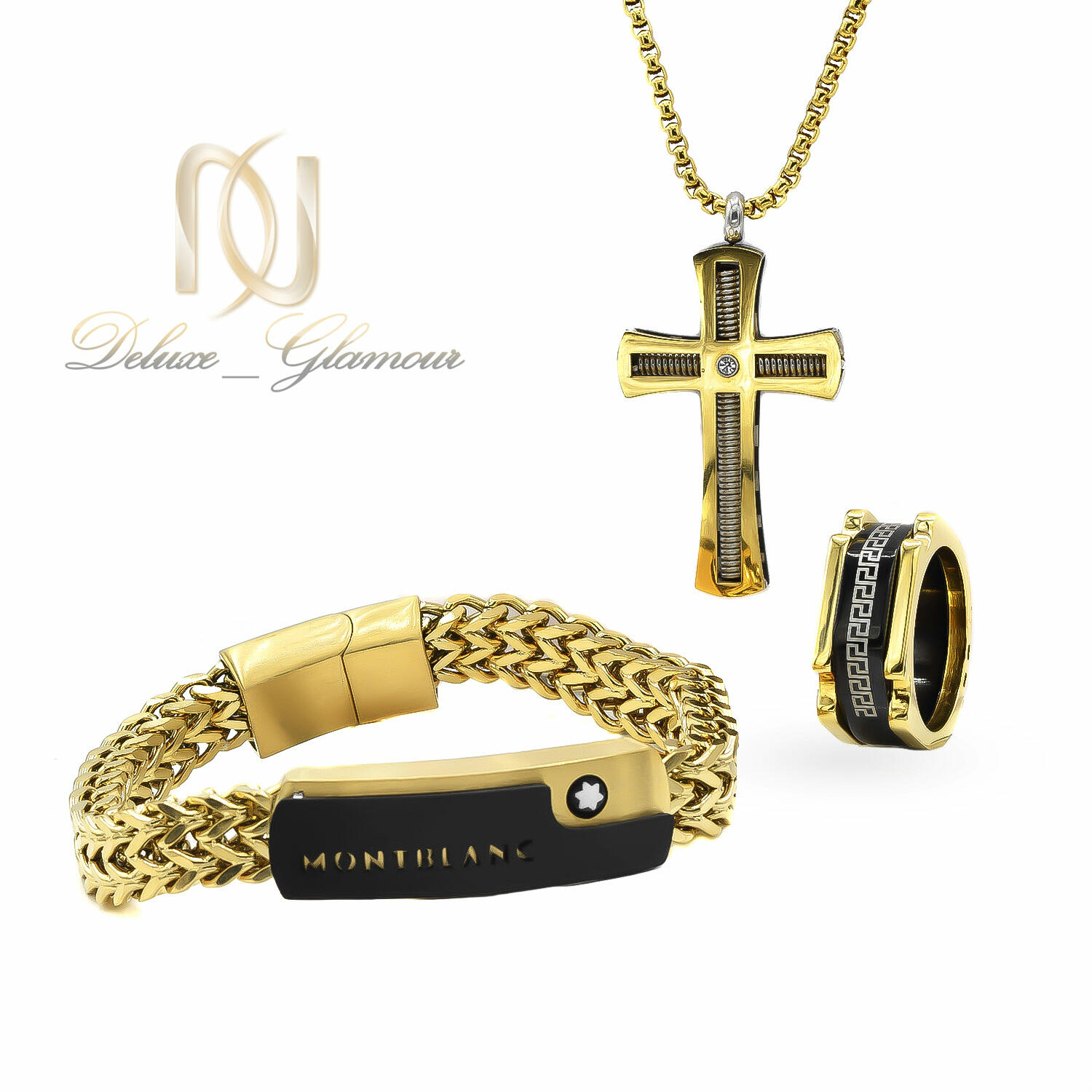 ست زیورآلات مردانه استیل طلایی ce-n18 دارای دستبندی با عرض 1 سانتی متر و طول 21 سانتی متر است که به صورت بند بافت میباشد که قفل آن به صورت آهنربایی است و رویه آن به صورت طرح MONTBLANC است که به رنگ مشکی است. گردنبند این ست زیبا نیز به صورت طرح صلیب است که یک طرف آن به رنگ طلایی است و رنگ دیگر دارای رنگ مشکی است که در داخل پلاک نیز از فنر استفاده شده است. لازم به ذکر است که بر روی پلاک 4 سانتی متری است گردنبند از زنجیر با کیفیت 60 سانتی متری استفاده شده است که باعث میشود گردنبند به صورت رولباسی باشد.