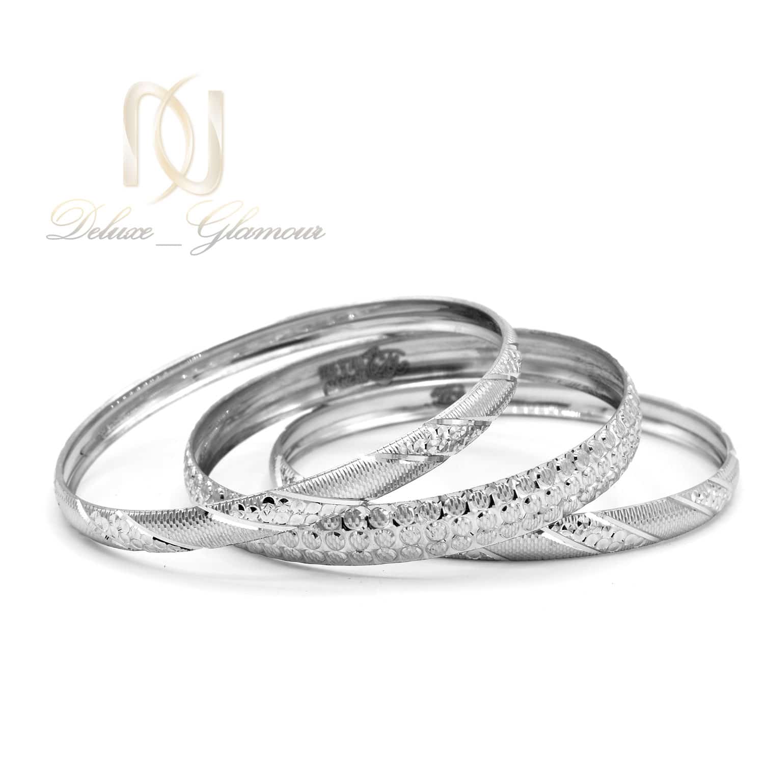 پک النگو نقره سه تایی طرح طلا سفید al-n131 از سری النگو زنانه های طرح طلا می باشد که به صورت پک سه تایی عرضه شده است. این النگو ها از نقره عیار 925 ساخته شده است و آبکاری آنها به صورت رودیوم می باشد که گرانترین روکش در بخش زیورآلات است و به اسم آب طلا سفید نیز شناخته می شود. استفاده از روکش رودیوم علاوه بر ایجاد براقیت و هم رنگ طلا سفید کردن فلز نقره از بروز هرگونه حساسیت پوستی ناشی از استفاده از زیورآلات جلوگیری می کند.