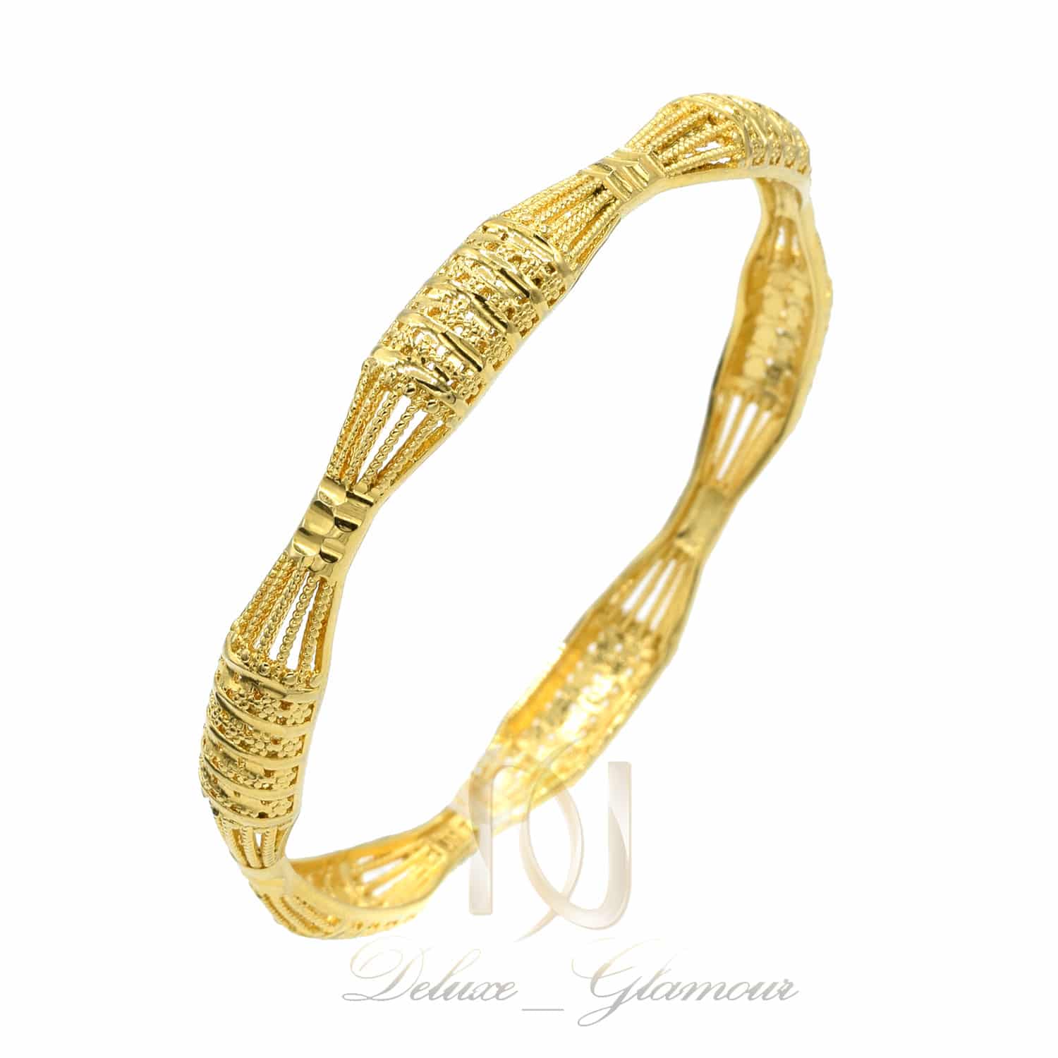 النگو برنجی زنانه طرح طلا ds-n706 از سری النگوهای طرح طلای زنانه می باشد که از فلز برنجی با روکش آب طلا ساخته شده است و از همین رو از ثبات رنگ بالایی برخوردار است و تا مدت ها می توان از آن به عنوان جایگزین النگو طلا استفاده کرد. این النگو به صورت تراش خورده است و در روی آن نگین استفاده نشده است.