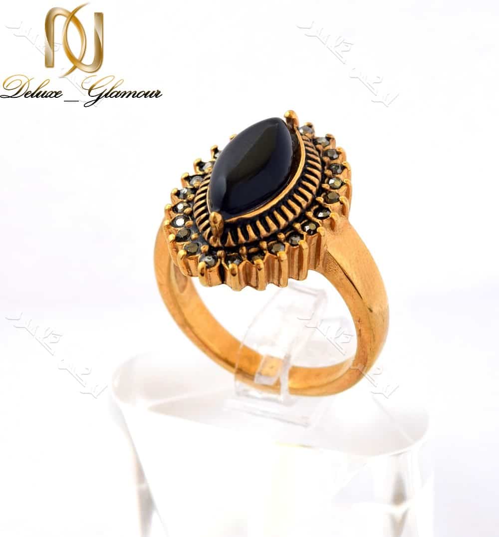 انگشتر استیل زنانه طرح برنزی با سنگ اپال مشکی مدل اشک Rg-n151 جزو زیورآلات با سبک آنتیک می باشد و قسمت های لاکی با رنگ مشکی جلوه ای خاص به این انگشتر داده است. سنگ اپال مشکی تعبیه شده در قسمت تاج انگشتر با طرح زیبای اشک مانند طرح یک انگشتر کلاسیک را تکمیل کرده است.