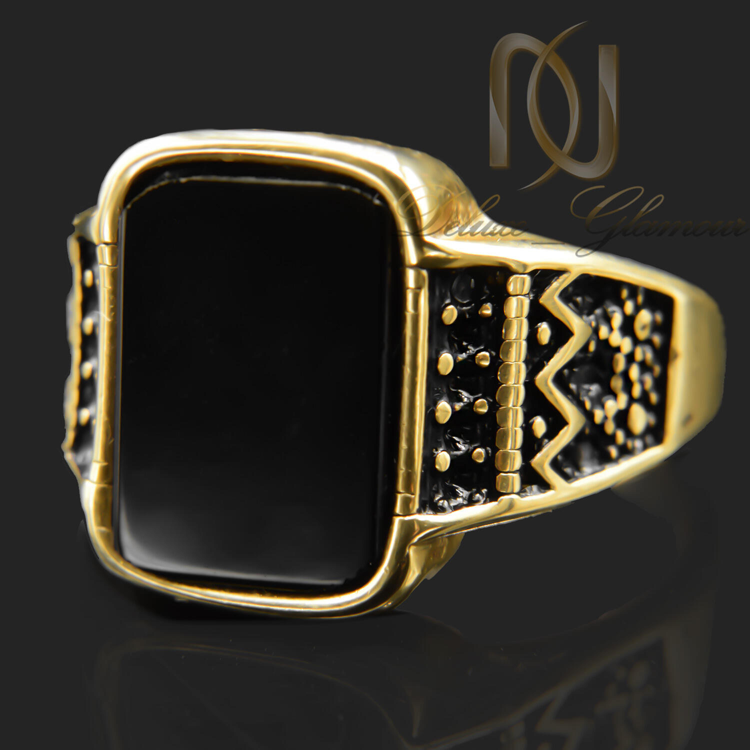 انگشتر استیل مردانه طلایی نگین مشکی مستطیلی rg-n995 دارای رکابی زیبا با نقوش برجسته باستانی است که بر روی آن سیاه قلم کاری نیز صورت گرفته که باعث ایجاد تم مشکی بر روی انگشتر شده است. نگین اصلی این انگشتر مردانه خاص از نوع طرح اونیکس اتمی و به صورت مستطیلی است که در گذر زمان دچار آسیب و تغییر رنگ نمی گردد.
