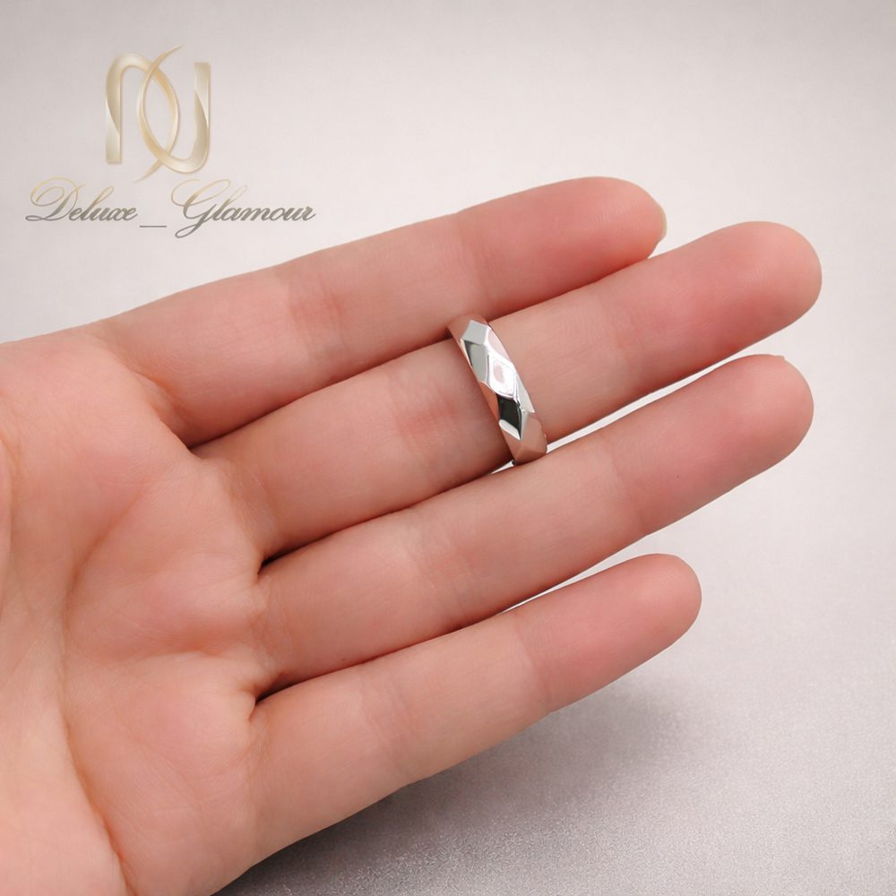 این حلقه از نقره با عیار 925 ساخته شده که استاندارد رایج و معتبر در تولید زیورآلات نقره است. وزن تقریبی انگشتر حدود 3 گرم بوده و با تلرانس نیم گرم ارائه می شود که از دوام و ماندگاری بالایی برخوردار است. آبکاری رودیوم 5 لایه روی سطح انگشتر انجام شده که نقش مهمی در افزایش مقاومت، حفظ رنگ و جلوگیری از تیرگی دارد. این حلقه بدون نگین طراحی شده و زیبایی و نقوش آن حاصل فرآیند تراش است.