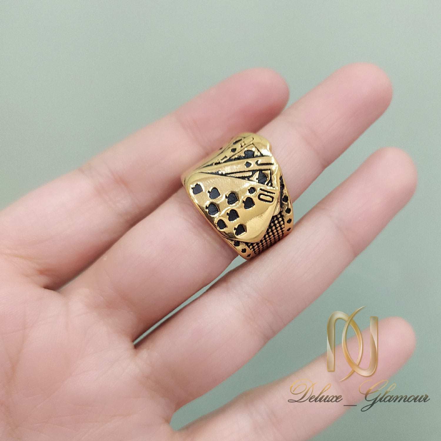 انگشتر طرح پوکر مردانه استیل طلایی rg-n635 از سری انگشتر های مردانه خاص و شیک می باشد که به صورت طرح بازی پوکر یا همان ورق ساخته شده است از همین رو جزو زیورآلات خاص و فشن مردانه می باشد که علاقمندان خاص خود را دارا می باشد. در ساخت این انگشتر مردانه شیک از بهترین نوع استیل برای ساخت زیورآلات یعنی استیل 316 استفاده شده است که بدون تغییر رنگ است و بهترین جایگزین برای طلا محسوب می شود.