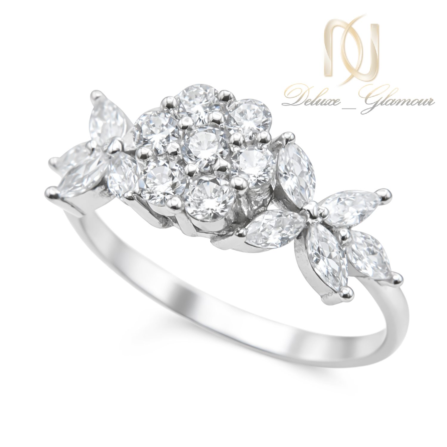 در طراحی این انگشتر از نگین های زیرکونیا سفید استفاده شده است. نگین ها در دو فرم گرد و مارکیز تراش خورده اند که کنار هم ساختار گل مانند طرح فلاور را شکل می دهند.