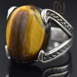 انگشتر نقره مردانه با سنگ چشم ببر