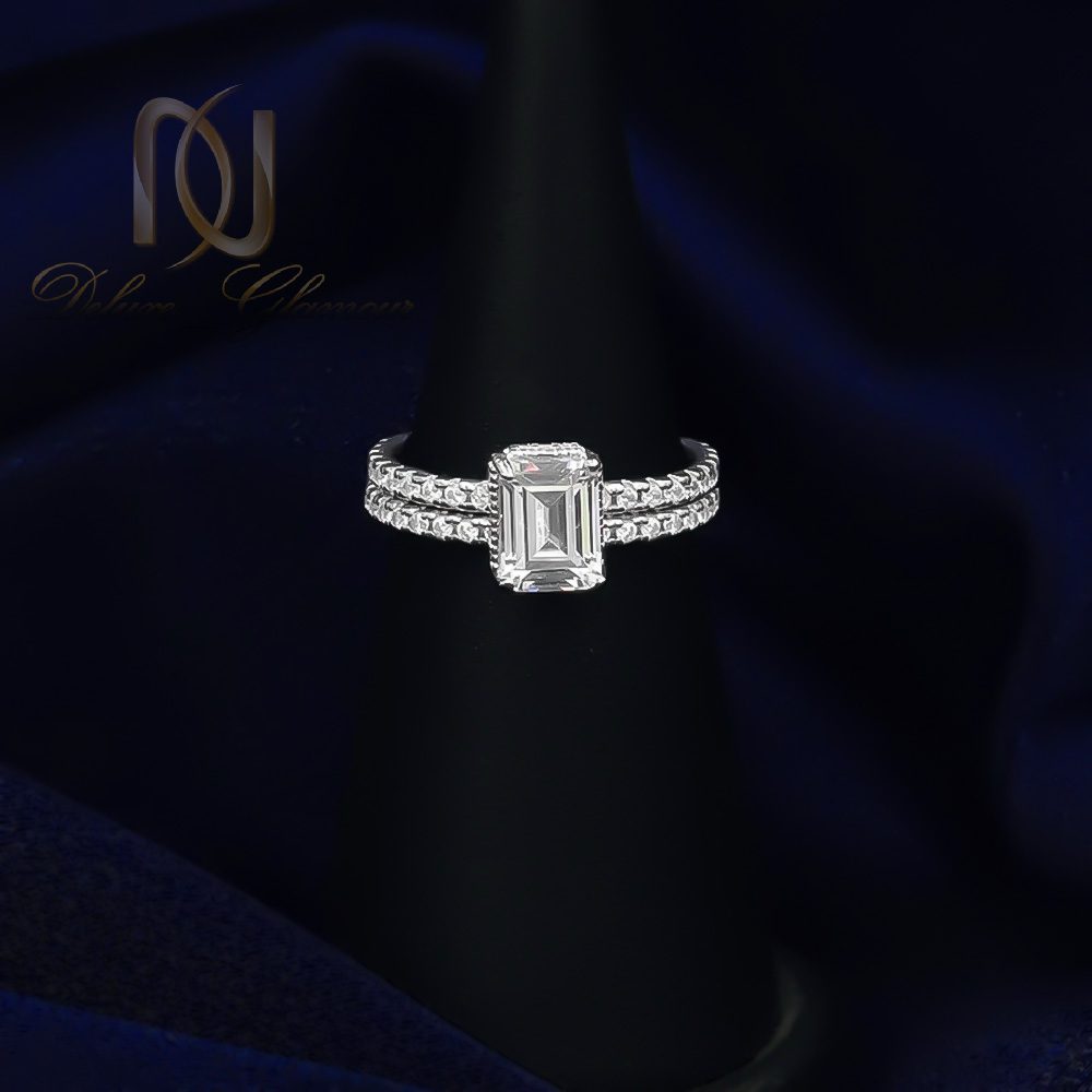 حلقه و پشت حلقه نقره زنانه ri-n322 یکی از زیورآلاتی است که هم برای استفاده روزانه و هم برای موقعیت های خاص انتخاب مناسبی به شمار می آید. طراحی این محصول بر پایه سادگی و در عین حال ظرافت انجام شده است؛ حلقه اصلی با نگینی مستطیلی از جنس زیرکونیا و پشت حلقه با ردیفی از نگین های ریز کنار هم قرار گرفته اند. این ترکیب باعث می شود محصول برای مجالس رسمی و مهمانی ها، و همچنین برای استفاده روزمره به راحتی قابل استفاده باشد.