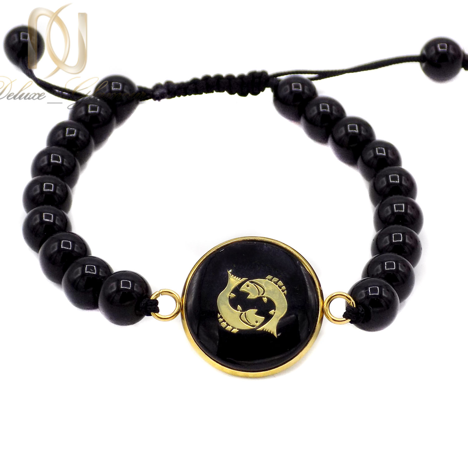 دستبند تولد سنگی اسفند ماه ma-n638 از سنگ های اونیکس براق تشکیل شده که دارای سایز 8 می باشند که بر روی نخ بادوام قرار دارند و بدون افت کیفیت هستند همچنین مهره این دستبند نیز از استیل درجه یک و با کیفیت ساخته شده است که به صورت نماد ماهی است و بر روی فلز نیز روکش آب طلا قرار گرفته است و قسمت ها رویه دارای رزین براق نیز می باشند.
