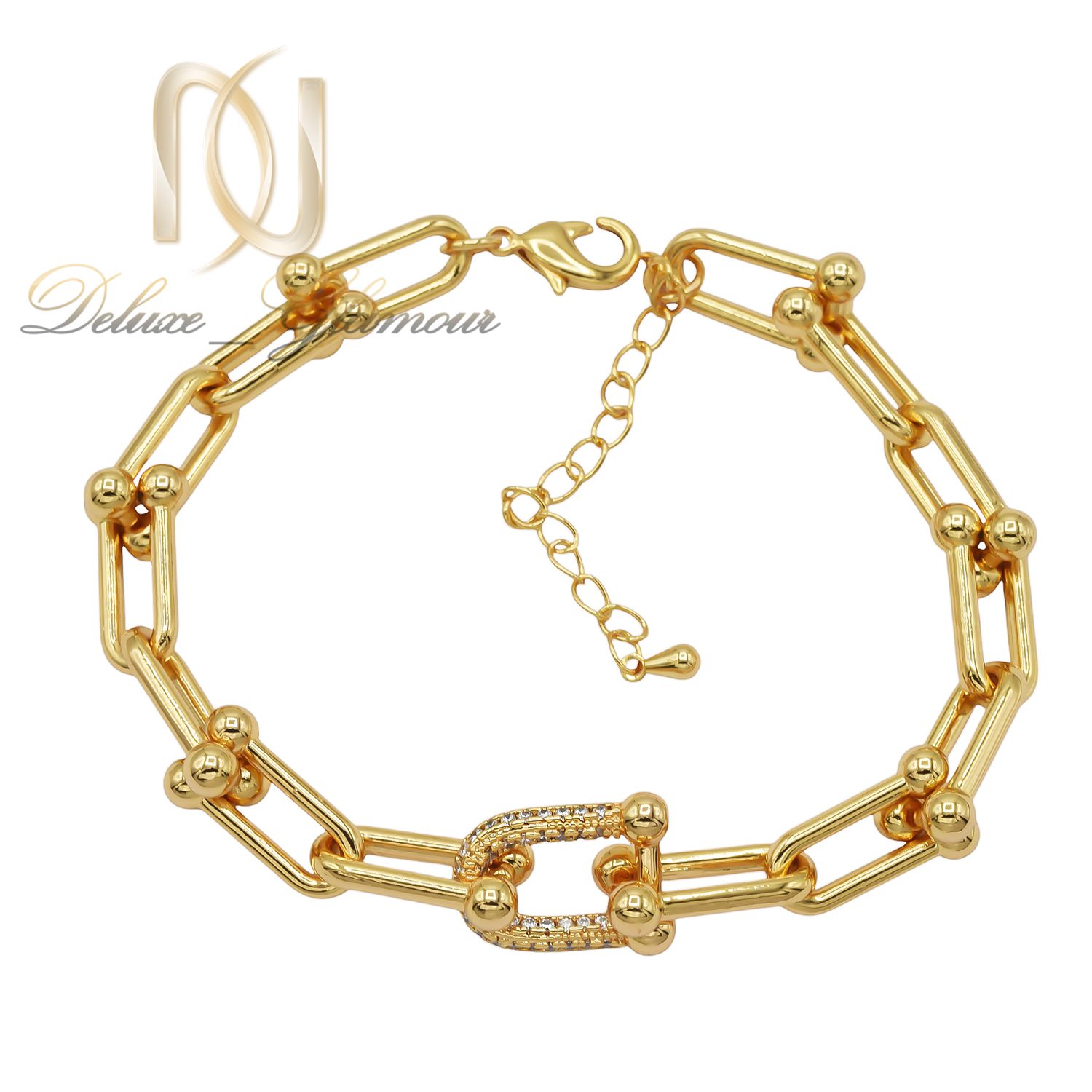 - نگین های درخشان: بر روی طرح نعل و مهره وسطی این دستبند از نگین های کریستالی درخشان از جنس زیرکونیا استفاده شده است.
