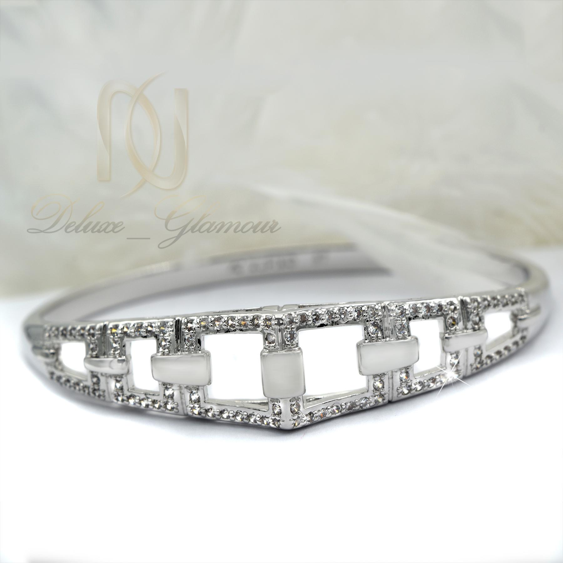 دستبند زنانه ژوپینگ روکش رادیوم ds-n355 به صورت نگین کاری شده است و بر روی آن نگین های کریستالی سفید رنگی از نوع زیرکونیا یا همان الماس شرقی وجود دارد که درخشش و شفافیت قابل توجهی را دارا می باشند. این دستبند دارای قطر 57 میلی متر است و برای افرادی که النگو سایز 3 و 2 استفاده می کنند مناسب است.