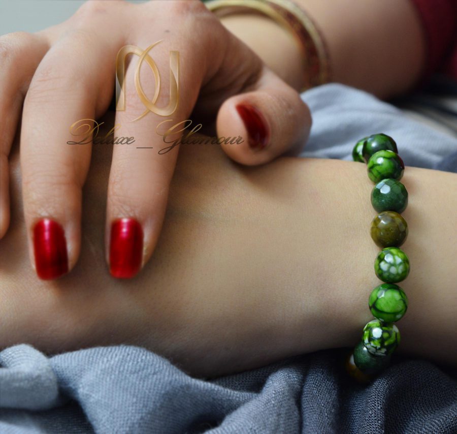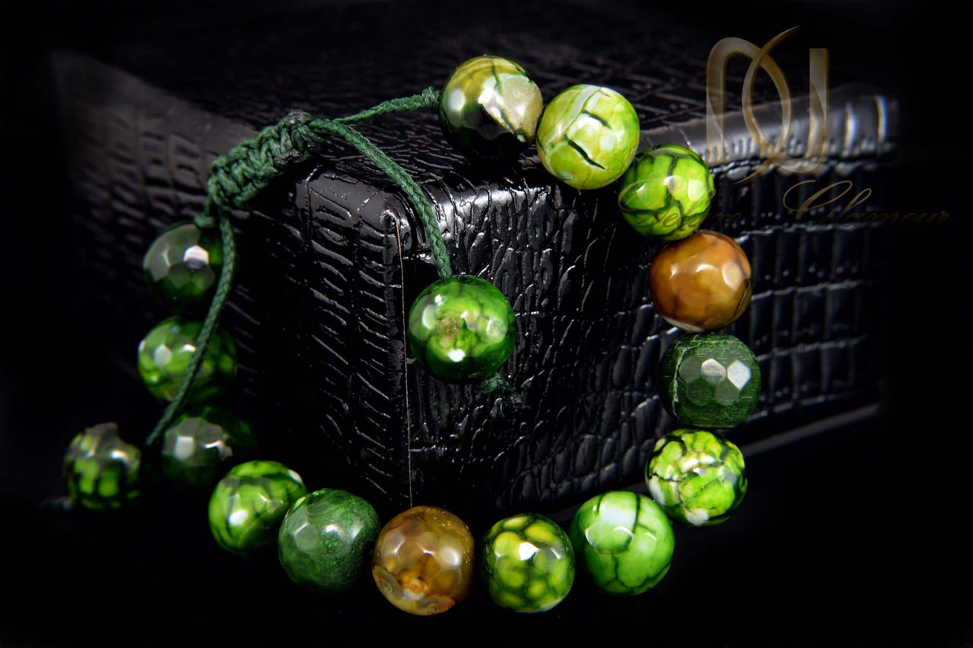دستبند سنگی سبز عقیق دخترانه با قفل کراواتی ds-n012