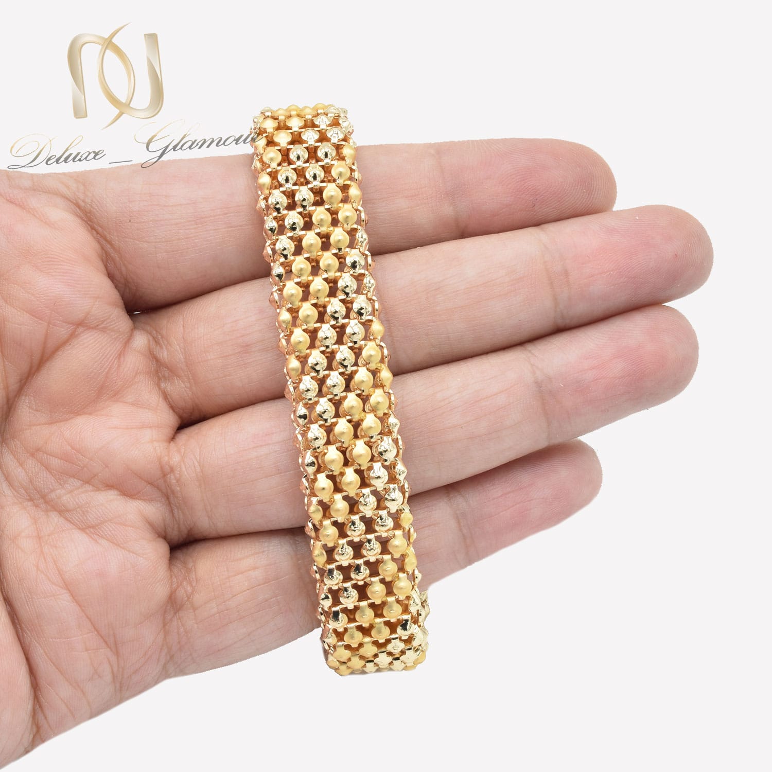 دستبند طلایی زنانه استیل ds-n651 از سری دستبند های زیبای زنانه می باشد که می توان به عنوان جایگزین طلا از آن استفاده کرد. این دستبند طرح طلای زیبا به صورت ساچمه ای می باشد و از استیل درجه یک و با کیفیت ساخته شده که آبکاری صورت گرفته شده روی آن نیز از نوع آب طلای 18 عیار می باشد. این دستبند را می توان در مراسمات و مجالس مختلف استفاده کرد و همواره باید به نکات گفته شده در مورد نگهداری از بدلیجات در مورد آن توجه کرد.