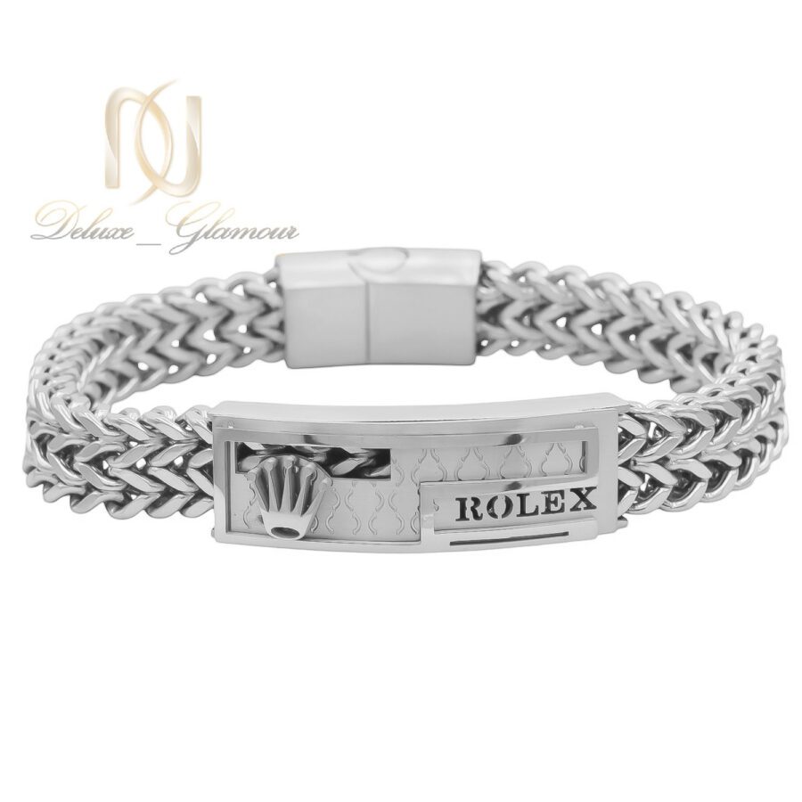 دستبند مردانه استیل رولکس دارای بندی به صورت بافت با عرض 10 میلی متر است که از ضخامت بالایی برخوردار است. بر روی بند این دستبند رویه مستطیلی شکل به صورت ثابت قرار گرفته شده که عرض آن 13 میلی متر است که بر روی آن نام و علامت برند رولکس به صورت برجسته حک شده است.