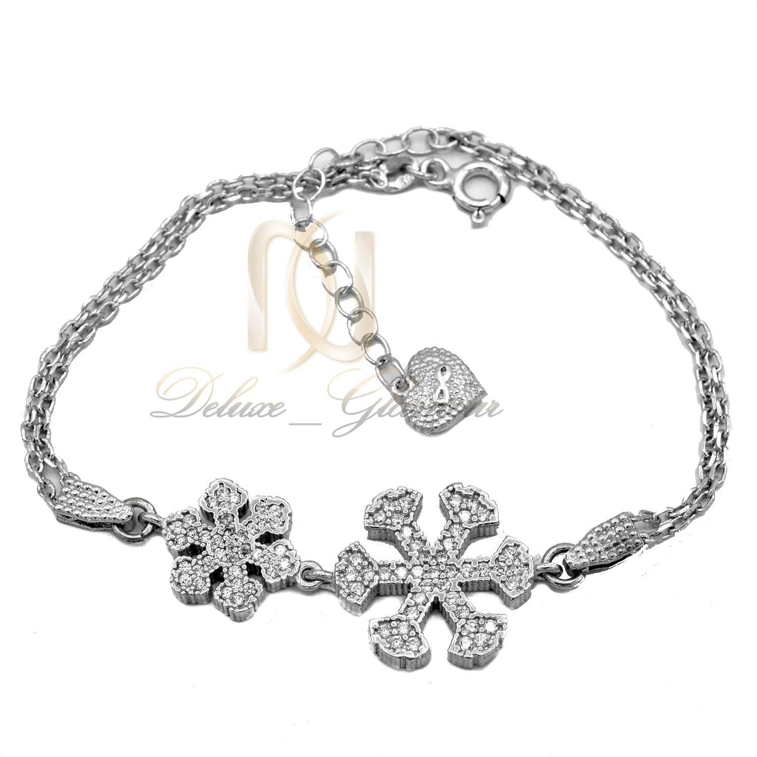 دستبند نقره دارای طرح زیبای برف می باشد و در ساخت ان از دو مهره طرح برف با سایز های مختلف استفاده شده است همچنین بر روی دونه های برف نگین های زیبایی استفاده شده است که به رنگ سفید می باشند و از جنس برلیان اتمی هستند. این دستبند دارای طول تقریبی 17 سانتی متر است مه در انتهای آن زنجیر اضافی برای افزایش سایز تعبیه شده است لازم به ذکر است که در انتهای دستبند آویز طرح قلب نیز به کار رفته است که بر زیبایی و جذابیت دستبند افزوده است.