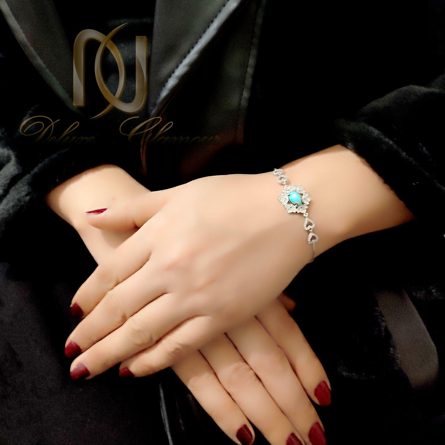 دستبند نقره زنانه فیروزه اصل نیشابور دارای طرح زیبای قلب می باشد که بر روی آنها نگین های زیرکونیای اتمی به کار رفته است و نگین اصلی دستبند نیز از نوع فیروزه اصل نیشابور می باشد که زیبایی دستبند را دوچندان کرده است. بند این دستبند زیبا و شیک به صورت ونیزی می باشد که طولی برابر با 18 سانتی متر دارد که در انتهای ان زنجیر 3 سانتی متری برای افزایش سایز و تغییر در نظر گرفته شده است.