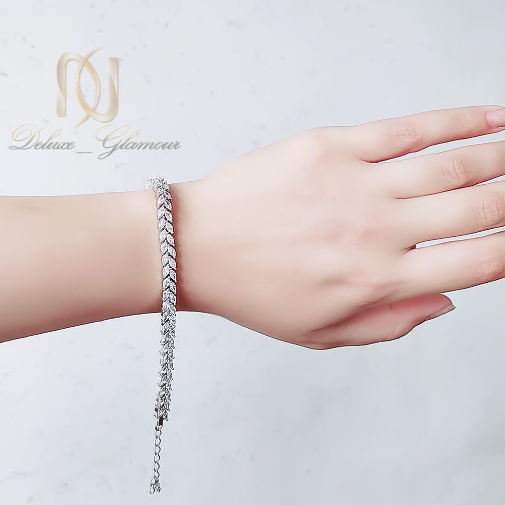 نگین های مارکیز که در طراحی این دستبند به کار رفته اند، از نوع زیرکونیا هستند؛ سنگ هایی با ضریب شکست بالا که جلوه ای مشابه سنگ های گرانقیمت دارند. این نگین ها با تراش خاص مارکیز به شکلی روی دستبند چیده شده اند که درخششی یکنواخت و چشم نواز به آن بخشیده اند. این سبک طراحی به خوبی با انواع استایل های رسمی و نیمه رسمی هماهنگ می شود.