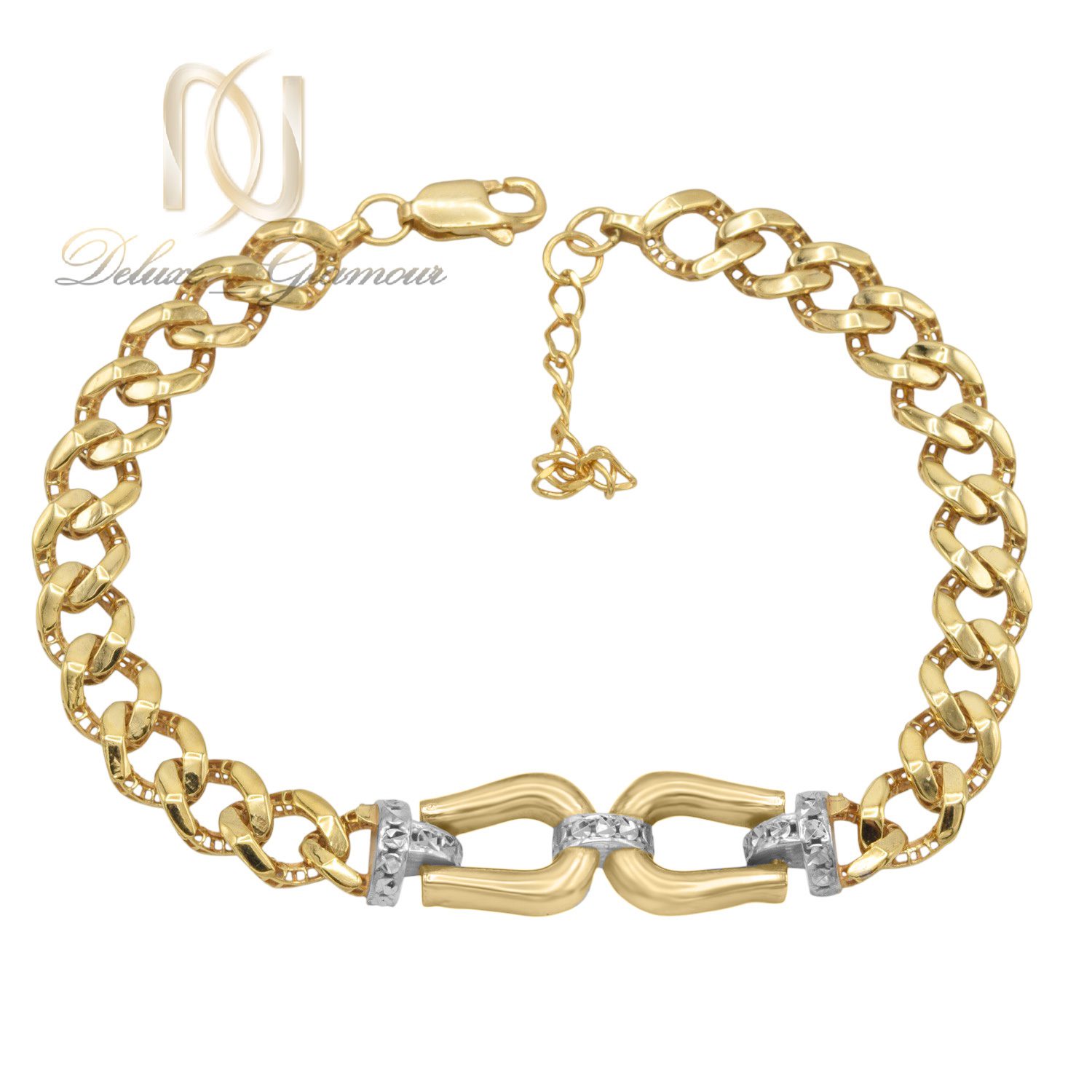 ساختار این دستبند به صورت سوپر لوکس و با استفاده از قالب رزین طراحی شده تا در عین ظرافت، مقاومت بالایی در برابر فشار و خمیدگی داشته باشد و اثری از جای جوش و لحیم بر روی آن دیده نشود. در بخش میانی، دو حلقه طلایی به شکل نعل اسب با بست نقره ای به هم متصل شده اند که به جای استفاده از نگین، از تضاد رنگی طلا و نقره برای زیبایی استفاده شده است.