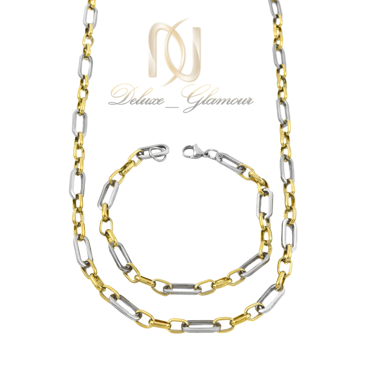 دستبند و زنجیر مردانه استیل نقره ای و طلایی ce-n98 یک ست زیبا و شیک از سری زیورآلات مردانه است که به صورت طرح زنجیری می باشد. این ست زیبا از استیل ضد زنگ ساخته شده است که دارای آبکاری طلایی و نقره ای است و به دلیل عدم تغییر رنگ برای استفاده روزانه و طولانی مدت مناسب می باشد.