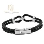 دستبند چرمی مردانه طرح بافت مشکی Ds-n489 از سری زیورآلات مردانه اسپرت می باشد که از جنس چرم با کیفیت عالی و دوام بالا می باشد و می تواند تا مدت ها شما را از خرید دستبند مردانه چرم جدید بی نیاز کند. این دستبند از چرم طرح بافت تشکیل شده است که به صورت دوردیفه می باشد و رویه دستبند با استفاده از فلز استیل به صورت گره عشق درآمده است.