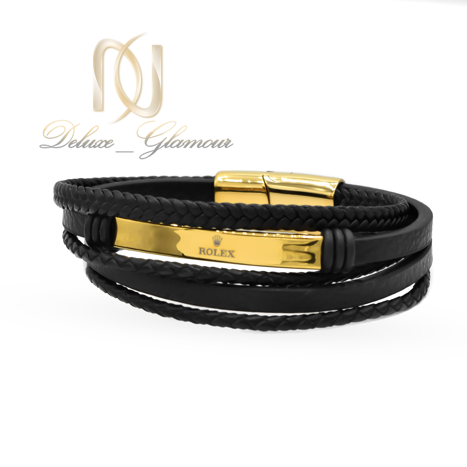 دستبند چرم مردانه رولکس BR-N77 دارای رویه ای استیل با آبکاری طلایی نیز است که بر روی آن نام ROLEX حک شده است. این دستبند زیبا دارای طول 21 سانتی متر است که قفل قرار گرفته شده روی آن از نوع گازگیر است که نسبت به قفل های جعبه ای گرانتر نیز می باشد. این دستبند مردانه چرم گزینه مناسب برای هدیه دادن به برادر، دوست، همسر و … می باشد و با توجه به تم مشکی آن برای ست کردن با انواع لباس و زیورآلات دیگر مناسب می باشد.