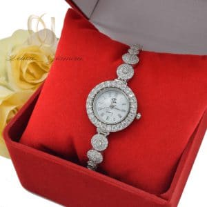ساعت جواهری نقره مچی زنانه wh-n334 یکی از شیک ترین و جدید ترین طرح های ساعت مچی زنانه می باشد که به صورت جواهری ساخته شده است برای ساخت این ساعت مچی شیک از نقره عیار 925 استفاده شده است که از آن به عنوان جایگزین طلا سفید یاد می کنند و بدون تغییر رنگ است. بر روی فلز نقره این ساعت زیبا از روکش رودیوم 5 لایه استفاده شده است که باعث شده است ساعت کاملا مشابه طلا سفید باشد. ساعت نقره wh-n334 از لحاظ ثبات رنگ و سلامت موتور دارای گارانتی یک ساله معتبر است که مهر تاییدی بر کیفیت بی نظیر آن است.