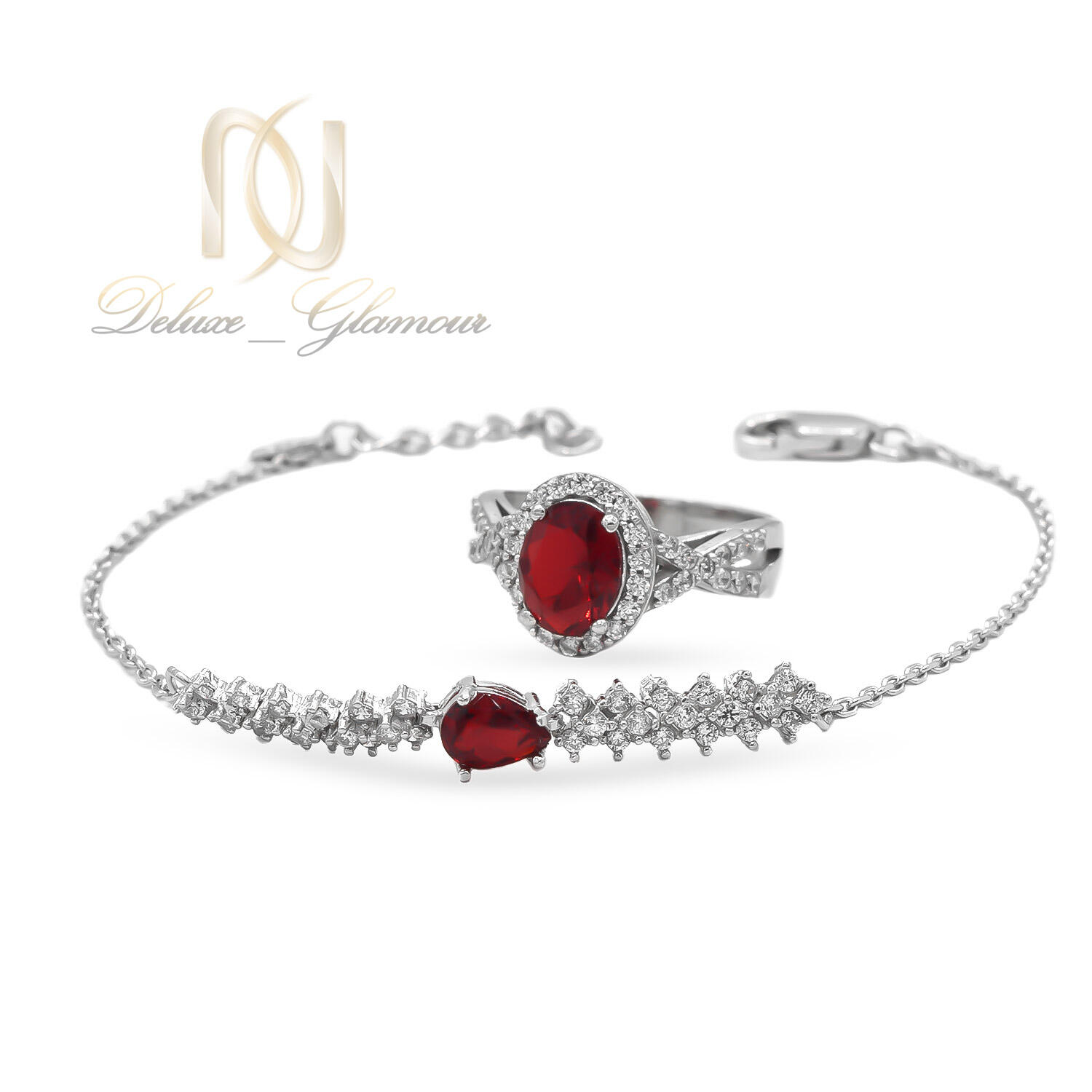 ست دستبند و انگشتر نقره زنانه ce-n74 دارای انگشتری شیک و زیبا نیز است که همانند دستبند ترکیبی از نگین های سفید و قرمز می باشد که بدون ریزش هستند و انگشتر این ست دارای سایزبندی های مختلف است از همین رو توصیه می شود قبل از خرید اقدام به تعیین سایز انگشتر نمایید.