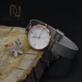 ست انگشتر و ساعت زنانه شیک ns-n961 به عنوان یکی از اکسسوری های خاص و زیبای زنانه و دخترانه می باشد که از ساعت اصل کارن بهره می برد که از استیل درجه یک و با کیفیت ساخته شده است که بند آن به صورت حصیری با روکش رودیوم است و صفحه آن به رنگ رزگلد با پس زمینه سفید است. لازم به ذکر است که موتور این ساعت زیبا نیز از نوع میوتای اصل ژاپن می باشد.