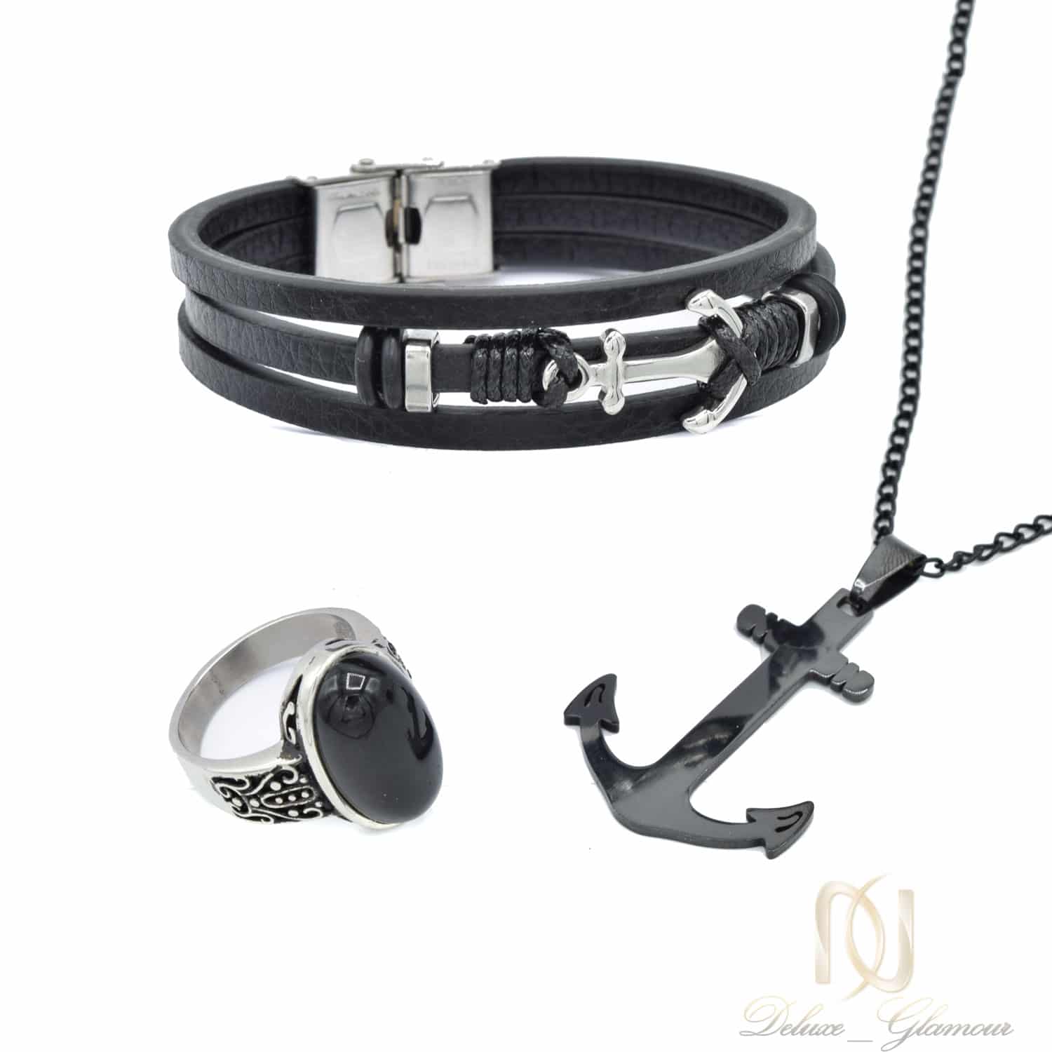 ست دستبند، گردنبند و انگشتر مردانه ns-n704 را می توان یک ست طرح جدید دانست که از دستبند چرم، انگشتر استیل و گردنبند استیل تشکیل شده است. دستبند این ست زیبا دارای طرح زیبای لنگر می باشد که از استیل است و چرم نیز به صورت سه ردیفه و از نوع با کیفیت است که با استفاده قفل جبعه ای می توان آن را تغییر سایز داد.