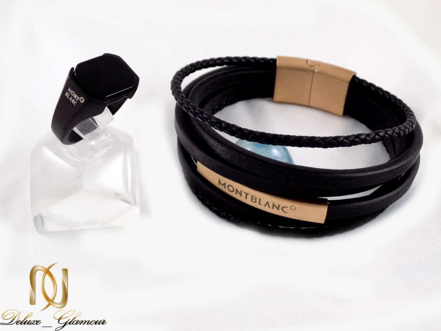 دستبند مونت مردانه مونت بلانک قابلیت ست شدن با انوع گردنبند مردانه و انگشتر مردانه را دارد که ما در اینجا با انگشتر مشکی مونت بلانک آن را ست نموده ایم. این انگشتر نیز از فلز استیل می باشد و طرح مونت بلانک است و در مقابل تغییر رنگ مقاوم است. در رکاب انگشتر نام مونت بلان ک حک شده است و طرح انگشتر و نگین آن به شکل مستطیلی می باشد. ست دستبند و انگشتر مردانه مونت بلانک با چرم طبیعی و استیل ضد زنگ gl-s103 می تواند به عنوان یک هدیه مناسب برای برادر، نامزد، دوست و … در مناسبت های مختلف باشد و با توجه به زیبایی منحصر به فرد آن همواره جزو اولویت های خرید نیم ست انگشتر و دستبند مردانه محسوب شود .
