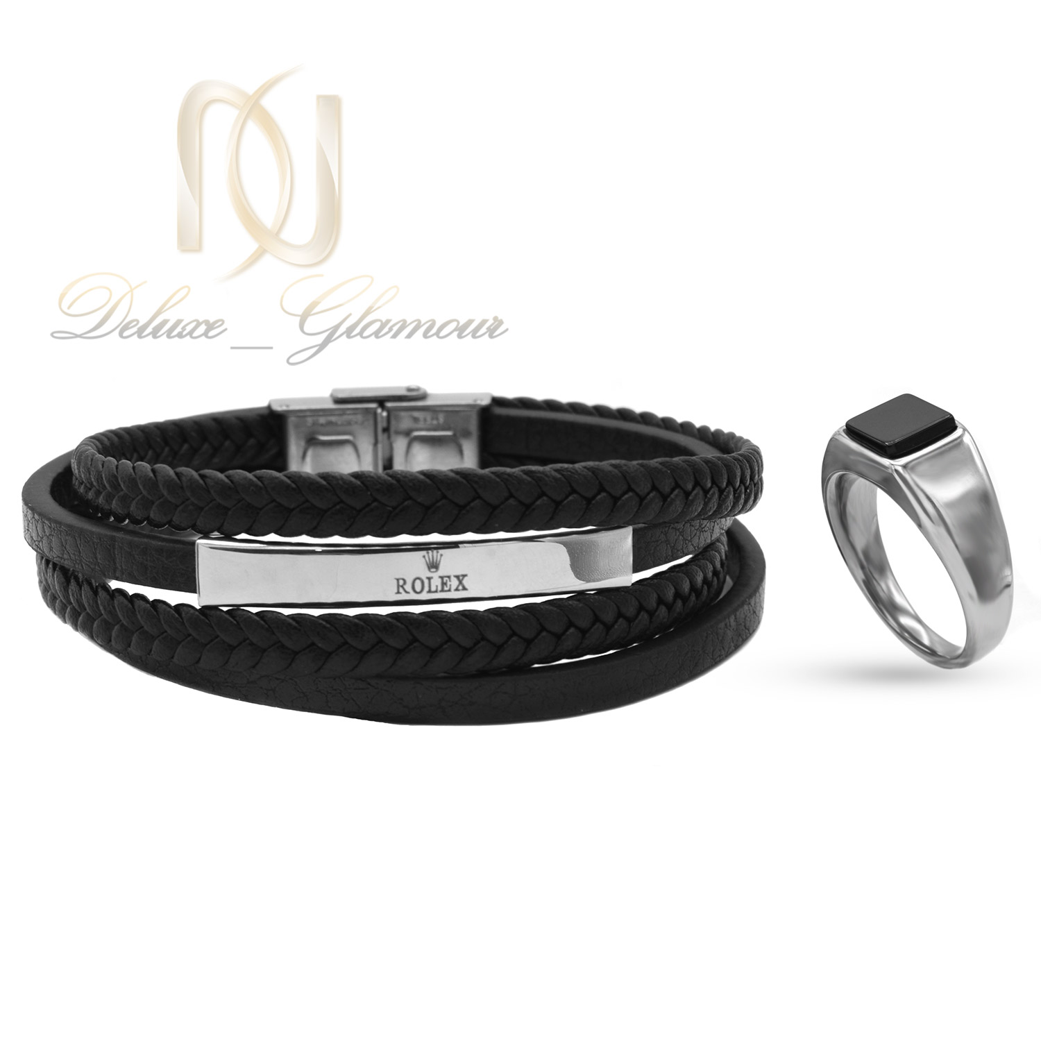 ست دستبند و انگشتر رولکس مردانه ce-n195 یکی از زیباترین ست های مردانه و پسرانه است که از دستبند چرم 4 ردیفه و انگشتر استیل شده است که به صورتی که هر دو طرح رولکس می باشند که یک طرح معروف در حوزه زیورآلات و اکسسوری های مردانه می باشند. دستبند این ست زیبا تلفیقی از چرم بافت و ساده است که بر روی آن رویه استیل ضد زنگ قرار داده شده که نام ROLEX بر روی آن حک شده است. . طول دستبند این ست نیز 22 سانتی متر است که در صورت نیاز می توان با استفاده از قفل جعبه ای آن را کوتاه تر نمود.
