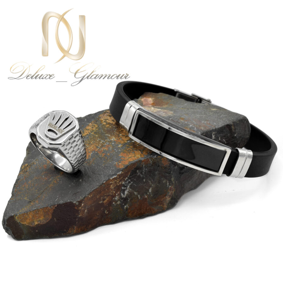 ست دستبند و انگشتر مردانه اسپرت ns-n873 دارای انگشتری به صورت طرح رولکس است که از استیل با کیفیت ساخته شده است و آبکاری صورت گرفته شده بر روی آن از نوع رودیوم درجه یک است که باعث می شود انگشتر بدون تغییر رنگ و کاملا همرنگ طلا سفید باشد. انگشتر این ست زیبا نیز دارای سایز بندی است از همین رو توصیه می شود قبل از خرید اقدام به تعیین سایز انگشتر نمایید.
