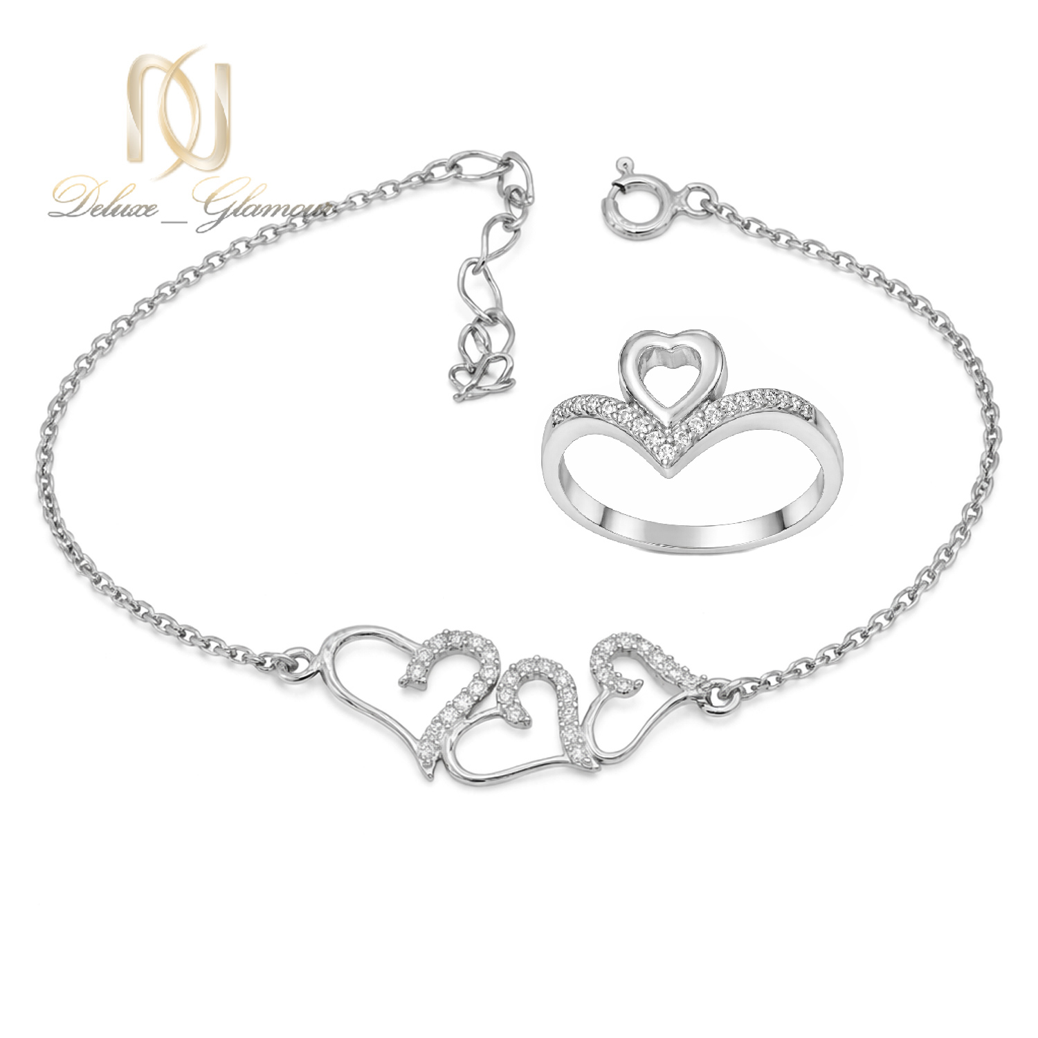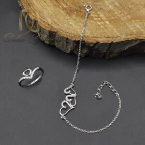 ست دستبند و انگشتر نقره زنانه قلبی