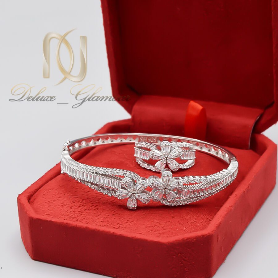 ست دستبند و انگشتر نقره زنانه مدل گل ce-n337 یکی از جدیدترین طرح های ست های نقره است که به عنوان نیم ست نیز شناخته می شود. طراحی مهره های گل مانند این ست در کنار نگین های اتمی و باگت که به شکلی هماهنگ در کنار هم قرار گرفته اند، باعث شده تا این ست از کیفیت و درخشش بالایی برخوردار باشد.