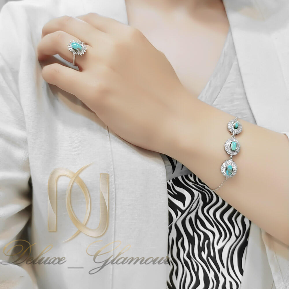 ست دستبند و انگشتر نقره زنانه نگین فیروزه نیشابوری ce-n113 یکی از زیباترین و جذاب ترین ست های زنانه و دخترانه متشکل از انگشتر و دستبند است که به صورت جواهری و طرح طلا ساخته شده که فلز استفاده شده برای ساخت آن نقره عیار 925 درجه یک است که با استفاده از رودیوم چندلایه آبکاری شده تا علاوه بر رنگ کاملا مشابه طلا سفید بر روی پوست نیز ایجاد حساسیت نکند.