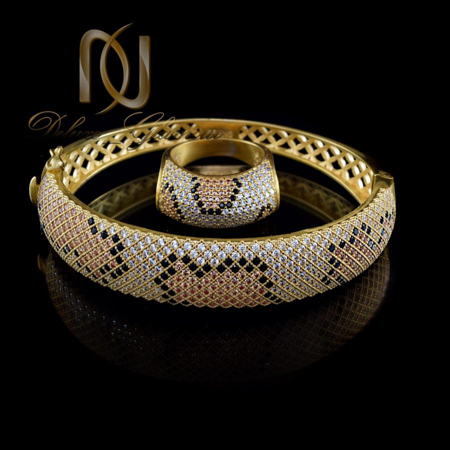 ست دستبند و انگشتر نقره طرح پوست مار ns-n233 متشکل از دستبند و انگشتر است. این ست زیبا از نقره عیار 925 ساخته شده است و دارای روکش آب طلای 18 عیار است. این ست زیبا از لحاظ ثبات رنگ دارای کارت گارانتی معتبر یک ساله است. این ست زیبا عاری از سرب و نیکل است و به همین جهت مناسب افرادی است که حساسیت پوستی به زیورآلات دارند.
