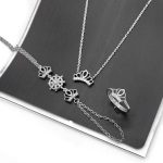 ست دستبند و گردنبند و انگشتر نقره دخترونه ns-n665 از سری ست های زیبای دخترانه می باشد که از دستبند تمیمه، انگشتر و گردنبند تشکیل شده است. این ست زیبا از نقره عیار 925 ساخته شده است و برای آبکاری آن از رودیوم چندلایه استفاده شده است که براقیت فلز نقره را افزایش می دهد. نگین های استفاده شده روی این ست زیبا از نوع زیرکونیا می باشد که بدون ریزش هستند. طرح استفاده شده برای این ست زیبا نیز به صورت طرح تاج می باشد که جزو طرح های محبوب می باشد.