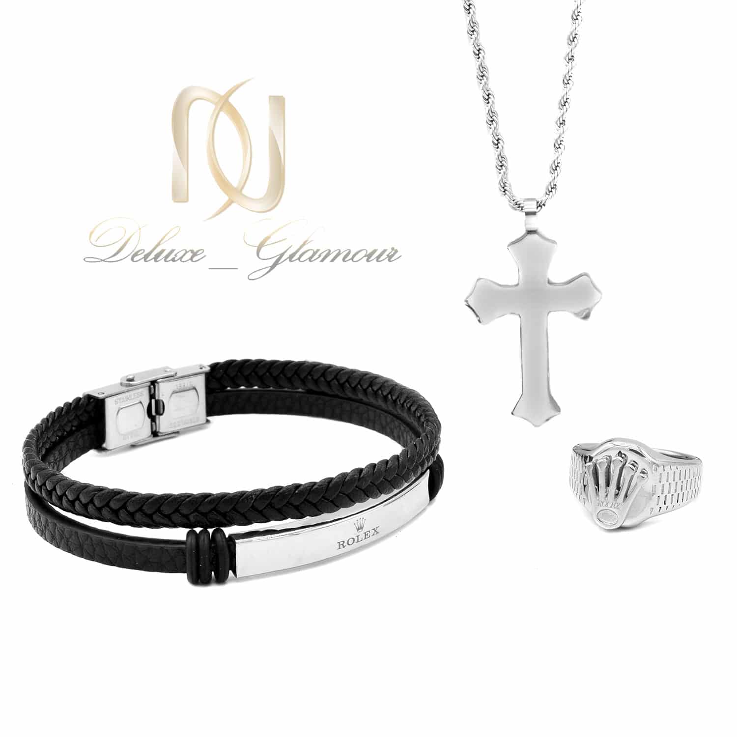 ست زیورآلات مردانه طرح رولکس ns-n739 یکی از زیباترین ست های مردانه است که از دستبند ، گردنبند و انگشتر تشکیل شده است. دستبند این ست زیبا از چرم و استیل ساخته شده است به صورتی که چرم بافت و ساده آن به صورت دو ردیفه است و جزو با کیفیت ترین چرم ها محسوب می شود که بدون افت کیفیت می باشد. این دستبند مردانه و پسرانه زیبا دارای رویه و قفل استیل است که بر روی رویه نام ROLEX حک شده است و قفل به صورت جعبه ای می باشد که این امکان را فراهم می کند طول 21 سانتی متری دستبند را کوتاه تر نمود.