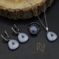 ست چشم نظر نقره زنانه سه تیکه ns-n972 یکی از طرح های معروف در حوزه زیورآلات زنانه و دخترانه است که از گردنبند، انگشتر و گوشواره تشکیل شده است. این ست چشم نظر زیبا و شیک از نقره عیار 925 درجه یک ساخته شده است که به عنوان نقره استرلینگ شناخته می شود و به واسطه عدم تغییر رنگ و افت کیفیت دارای گارانتی یک ساله می باشد. این ست زیبا دارای روکش رودیوم نیز می باشد که باعث شده است رنگ نقره کاملا مشابه طلا سفید باشد.