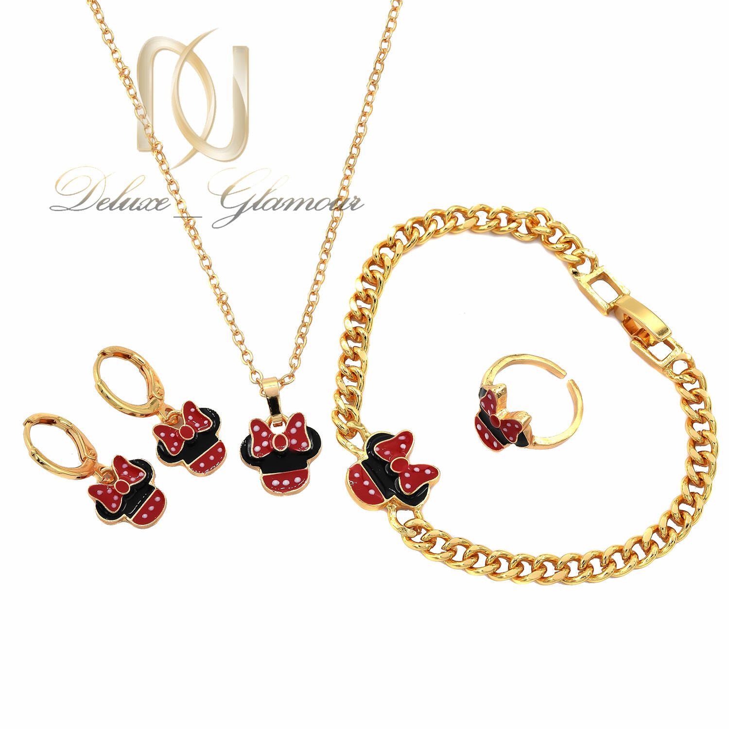 ست کودکانه استیل طلایی دخترانه NS-N919 از سری سرویس ها و ست های کامل بچگانه دخترانه است که به صورت چهار تیکه است و از دستبند، انگشتر، گردنبند و گوشواره تشکیل شده است. این ست زیبا و شیک به صورت کارتونی است و برای ساخت آن از استیل ضد زنگ درجه یک استفاده شده است که آبکاری طلای 18 عیار باعث شده است تا کاملا همرنگ طلا باشد.