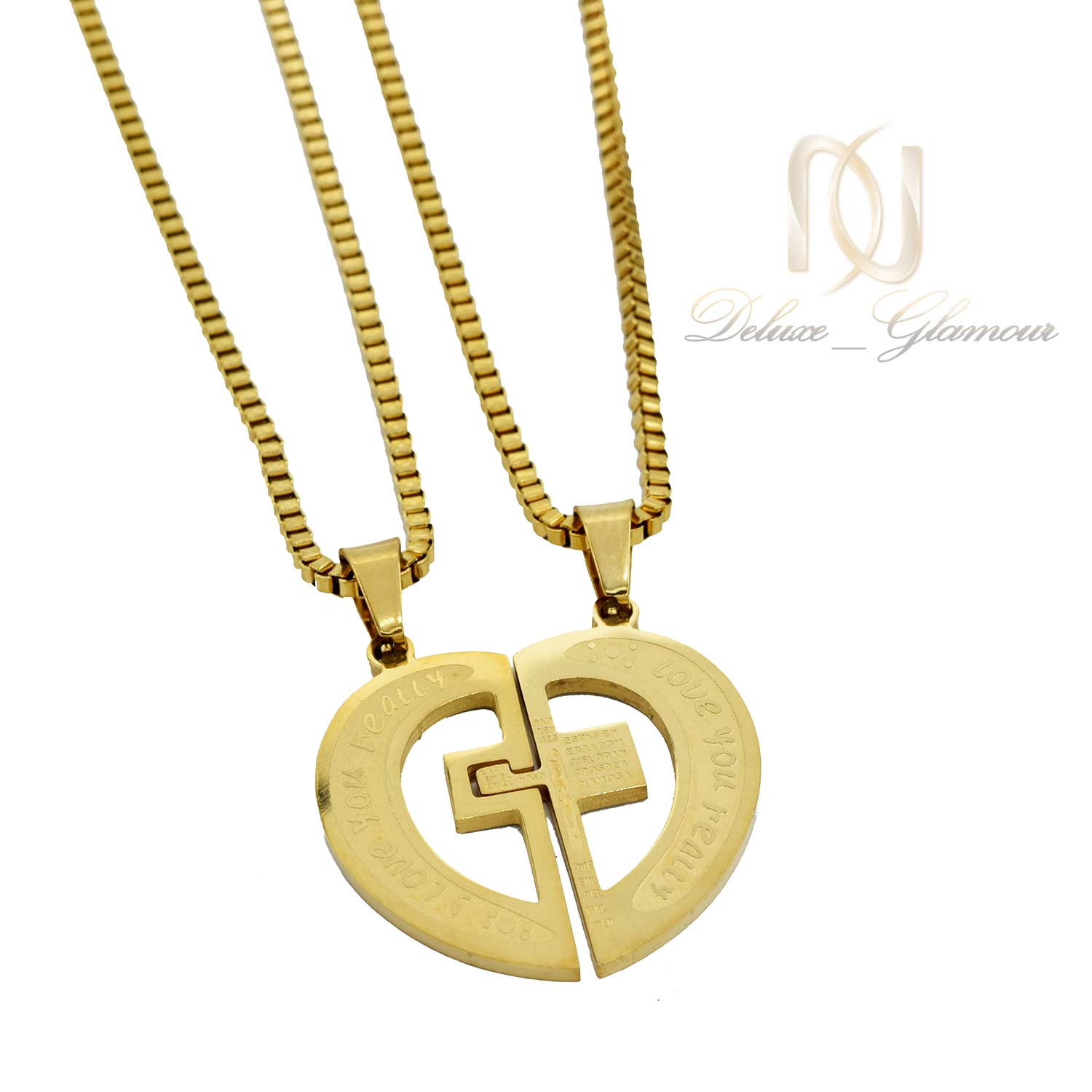 ست گردنبند دوتکه استیل nw-n596 از سری گردنبند های دو تکه می باشد که به صورت دخترانه و پسرانه مورد استفاده قرار می گیرد و اغلب هدیه ای مناسب در مناسبت هایی همانند ولنتاین و تولد می باشد که می توانید به دوست، نامزد و … هدیه کنید. این گردنبند های عاشقانه از جنش فلز استیل با روکش آب طلای 18 عیار ساخته شده است و از همین رو دارای ثبات رنگ بالایی می باشند.