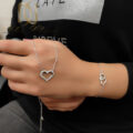 ست گردنبند و دستبند دخترانه نقره اصل ce-n40 یک طرح خاص و ظریف می باشد که به صورت ست متشکل از دستبند و گردنبند می باشد که با استفاده از قالب طلا سفید ساخته شده است. برای ساخت این ست زیبا و شیک از نقره با کیفیت عیار 925 استفاده شده است که با استفاده از بهترین و با کیفیت ترین نوع آبکاری یعنی رودیوم روکش خورده شده است از همین رو بدون افت کیفیت می باشد و دارای گارانتی یک ساله ثبات رنگ است.
