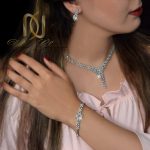 سرویس نقره عروس جواهری طرح هفت ns-n234 از سری سرویس های طرح طلای جواهری می باشد که مناسب عروس خانم های عزیز است. این سرویس زیبا از نقره عیار 925 ساخته شده است و بدون تغییر رنگ می باشد و از لحاظ ثبات رنگ دارای کارت گارانتی معتبر است. این سرویس نقره به صورت طرح هفت بوده و روی آن با نگین های زیبا تزیین شده است. این نگین های درخشان و شفاف از نوع برلیان اتمی اصل می باشند که به رنگ سفید کریستالی و به صورت باگت و بدون ریزش هستند.