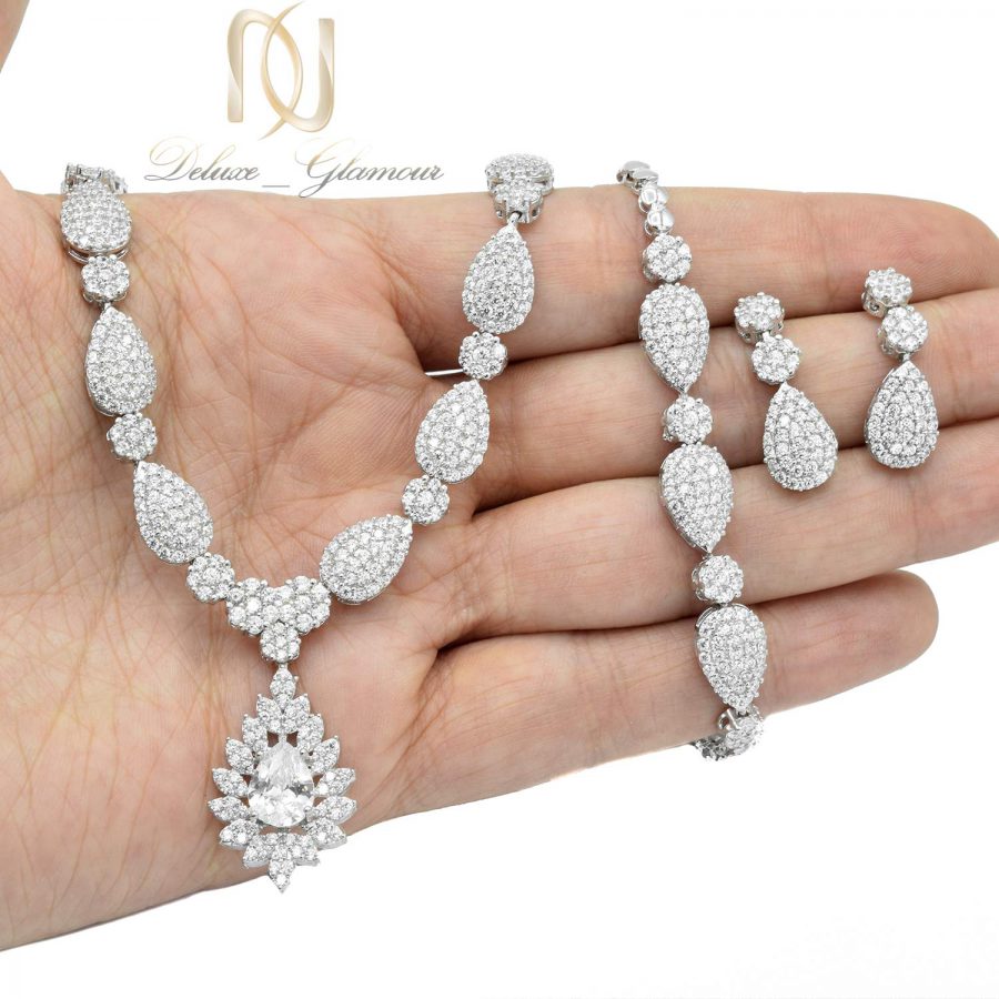 سرویس نقره عروس جواهری ns-n501 از سری زیورآلات نگین دار و طرح طلا سفید می باشد که از جنس فلز نقره عیار 925 ساخته شده است و برای افزایش براقیت آن و همچنین همرنگ طلا کردن از آب طلای سفید همراه همراه با رودیوم استفاده شده است. این سرویس نقره جواهری به دلیل کیفیت بالای ساخت ان و همچنین خلوص بالای نقره آن بدون تغییر رنگ است و دارای گارانتی یک ساله نیز می باشد.