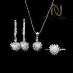 نیم ست دخترانه طرح قلب سنگ اوپال ns-n516 متشکل از گوشواره، گردنبند و انگشتر می باشد و از جنس فلز نقره عیار 925 اصل ساخته شده است. این نیم ست نقره ظریف به صورت طرح طلا طراحی شده است و از همین رو برای آبکاری آن از رودیوم استفاده شده است تا همرنگ طلا سفید باشد و براقیت و درخشندگی طلا سفید را داشته باشد.