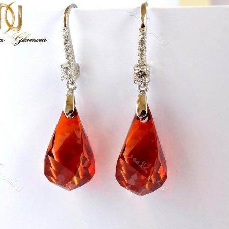 نیم ست زنانه عنابی ژوپینگ با کریستالهای سه بعدی اشکی سواروسکی Ns-n129 دارای کریستالهای سه بعدی سواروسکی به شکل اشک می باشد و تراشکاری های انجام شده بر روی آن زاویه ها ی زیبایی به وجود آورده است. این کریستالها به رنگ عنابی و متمایل به رنگ آجری هستند و گزینه ای مناسب برای ست کردن با لباسهای چرمی با رنگ قهوه ای و عسلی می باشند.