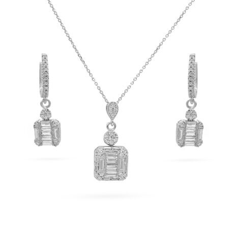 نیم ست زنانه نقره طرح طلا ns-n493 از سری زیورآلات زنانه طرح طلا می باشد که از فلز نقره با عیار 925 ساخته شده و آبکاری آن به صورت رودیوم و آب طلای 18 عیار است که از ثبات رنگ بالایی برخوردار است. این نیم ست نقره شیک متشکل از انگشتر، گردنبند و گوشواره می باشد و رنگ های دیگری نظیر رزگلد و نقره ای نیز هست که در بخش نیم ست نقره قابل مشاهده است.